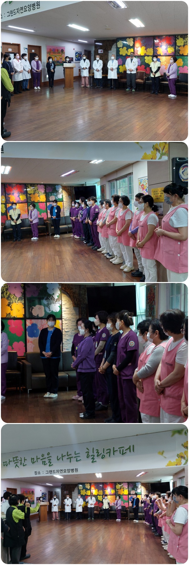 3월 월례회 가져. 페이지 정보 작성자 최고관리자 작성일26-03-04 16:40 조회46회 댓글0건 이전글 다음글 목록 본문 그랜드자연요양병원은 3월 4일 1층 로비에서 전 직원들이 참석한 가운데 그랜드자연 월례회를 가졌다. 신입 직원들의 인사가 이어졌고 봄의 설레임으로 시작되는 3월을 준비하는 마음으로 "그랜드 그랜드 힘!"의 구호와 함께 3월 월례회를 마쳤다. 댓글목록 등록된 댓글이 없습니다. 이전글 다음글 목록