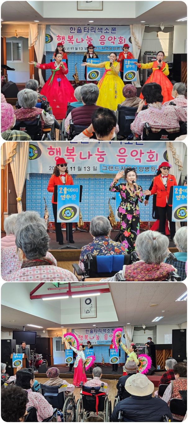그랜드자연요양병원은 11월 13일 한울타리 색소폰의 <행복 나눔>공연으로 작은 음악회를 열었다.